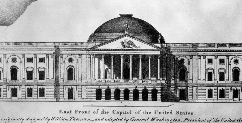 Shortly after his marriage, Thornton and his bride sailed to Tortola where he practiced medicine. In 1792, this amateur architect entered yet another contest, this time for the design of the US Capitol building and the president’s house in Washington, DC. After several months he sailed back to the United States, design in hand, and won the competition.