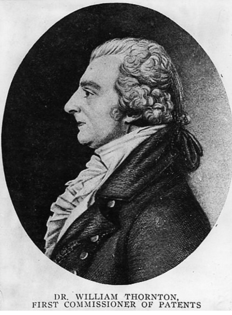 At a later date he helped Thomas Jefferson design the Georgian buildings for the University of Virginia. During the War of 1812, he joined the militia and was known for his efforts to save the capital’s buildings from destruction. From 1802 to 1929, Thornton served as the first superintendent of the US Patent Office and over the years received eight patents for his own inventions.