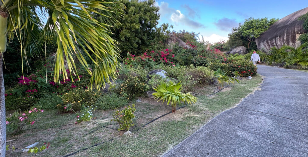 We then checked into our guest house. Comprised of a series of cottages in the island’s famed Valley, it was surrounded by Virgin Gorda’s signature boulders. The tall and looming granite rocks towered over our heads, interspersed by vibrant orange and magenta bougainvillea. We walked to Spring Bay, with more towering boulders defining the path to the beach. Spring Bay, along with The Baths – Virgin Gorda’s most famous natural attraction – and Devel’s Bay form a single national park. The Baths, with its cathedral like boulders forming grottoes and sea pools, is where most of the BVI’s visitors go. But Spring Bay will always remain on the list of my favorite BVI beaches. There is powdery white sand, and sheltering sea grape and almond trees for shade. The calm clear ocean is sprinkled with even more boulders rounded by centuries of erosion.